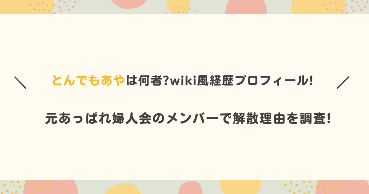 この記事では、とんでもあやさんの家族構成や現在の家族について調べてみました。